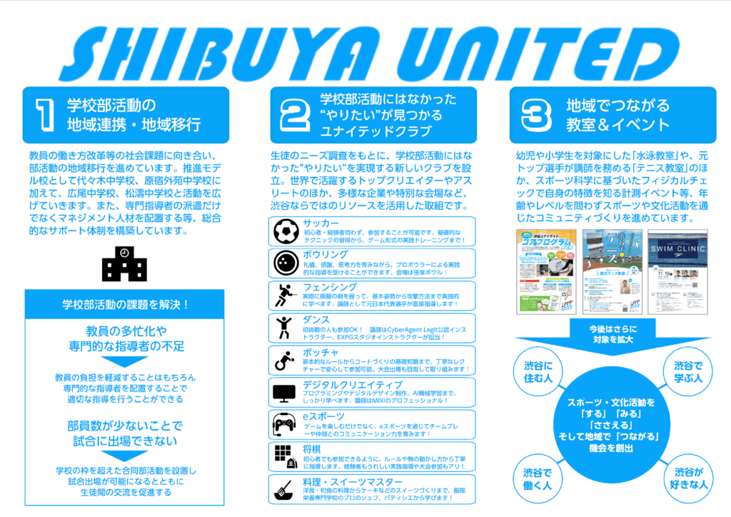 | 渋谷区、渋谷ユナイテッド、ちがいをちからに共同事業体と共催で渋谷スポフェス2023(11/19)を開催 | |