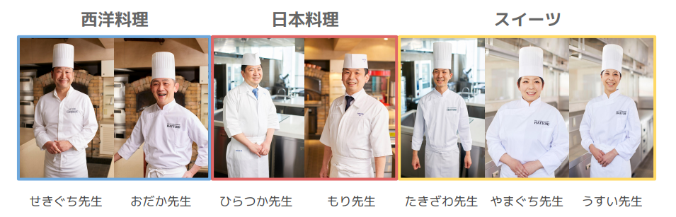 服部栄養専門学校の、指導経験豊富な先生方です。先生方から学んだシェフ、調理人、パティシエ、パン職人などは業界で4万人以上!