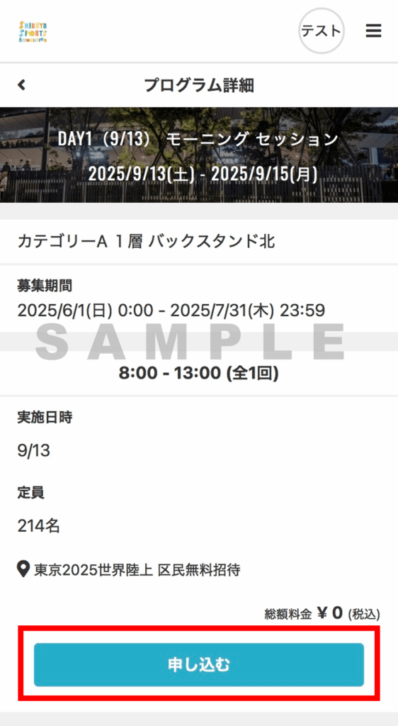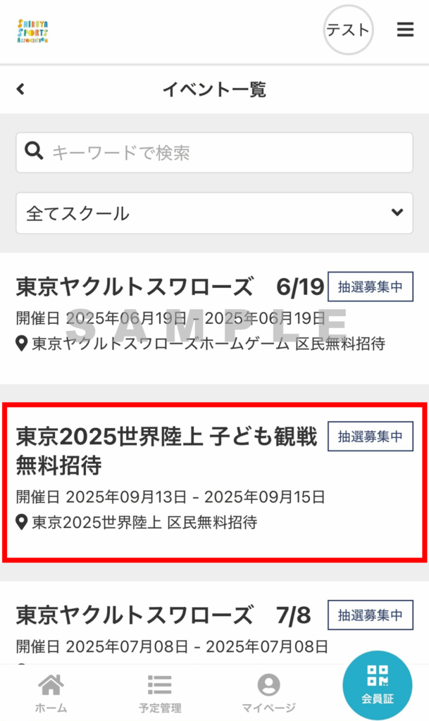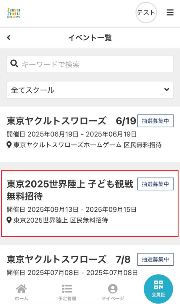 「東京2025世界陸上 子ども観戦無料招待」を選択します。