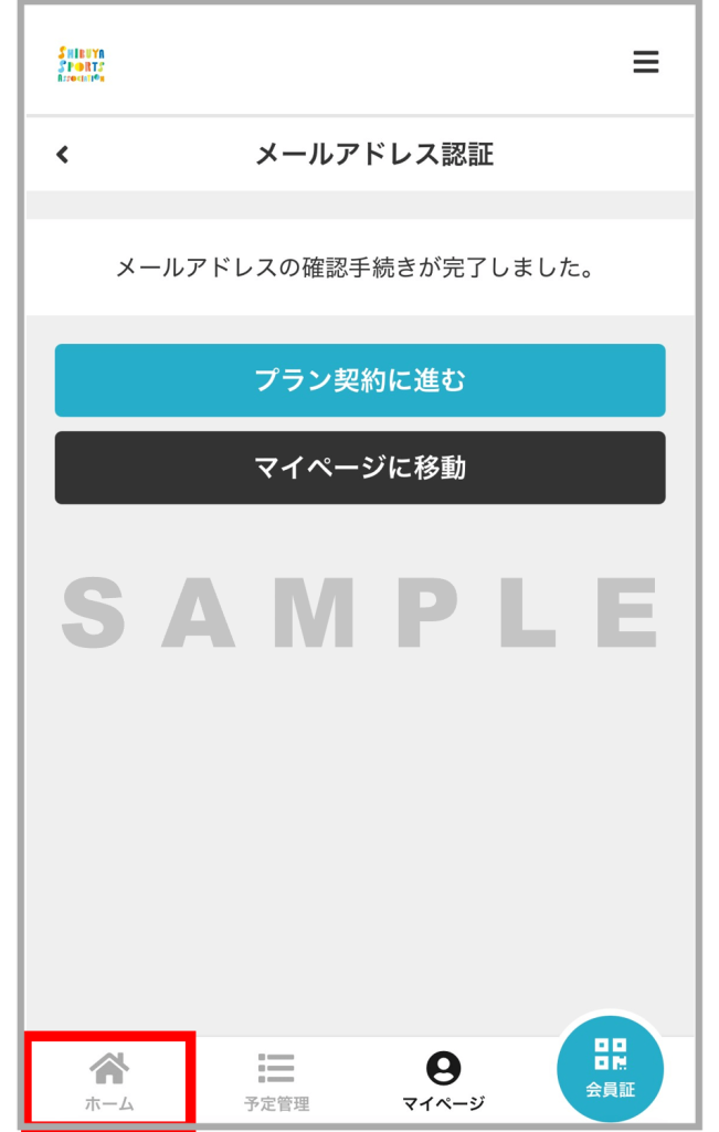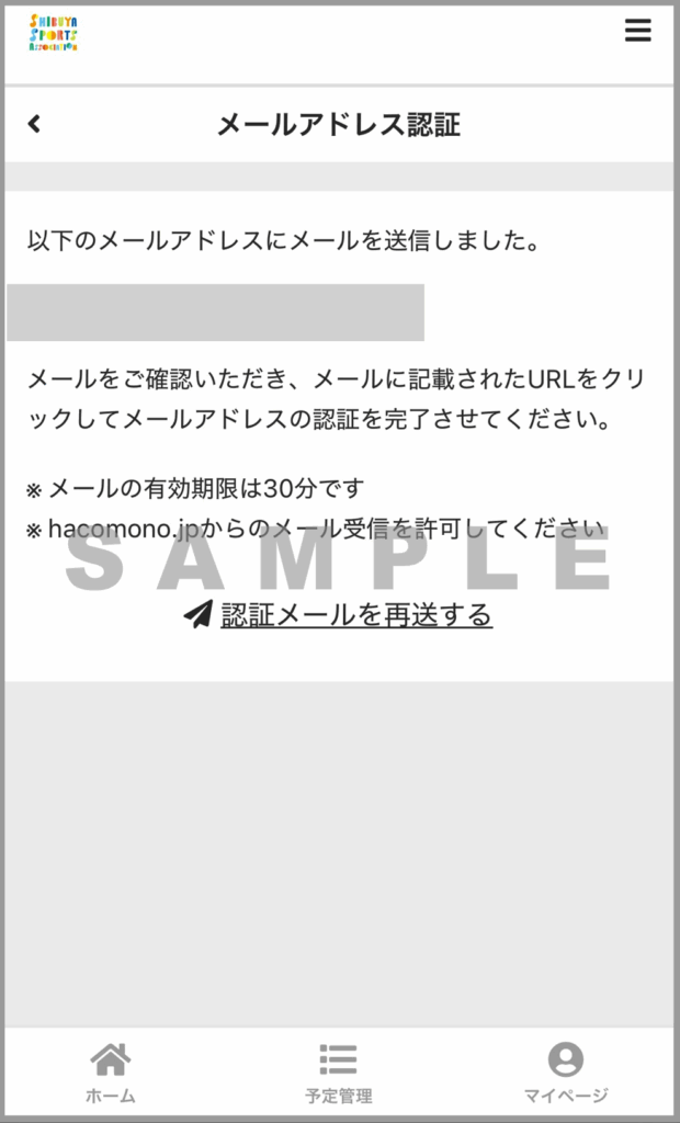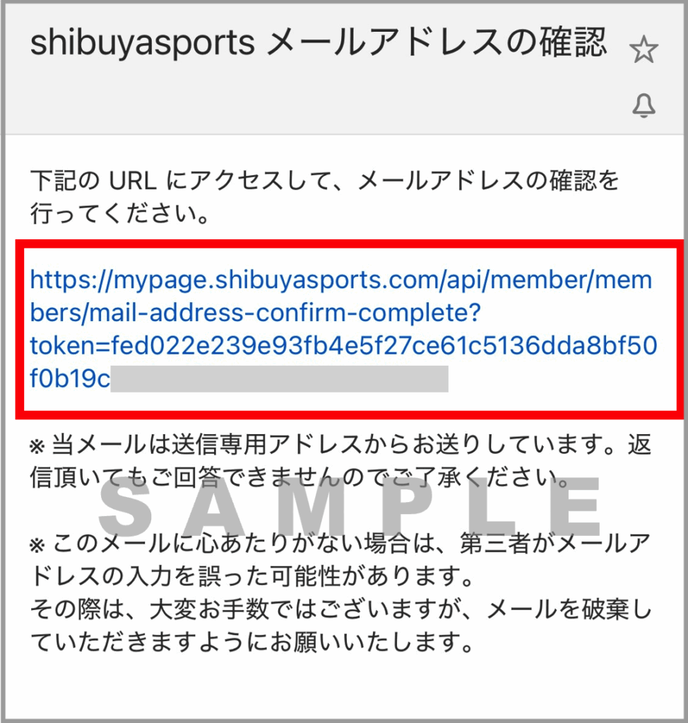shibuyasports から登録したメールアドレス宛に「shibuyasports メールアドレスの確認」が届きますので、メール本文内のURLを押します。