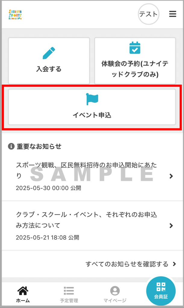「イベント申込」ボタンから進みます。